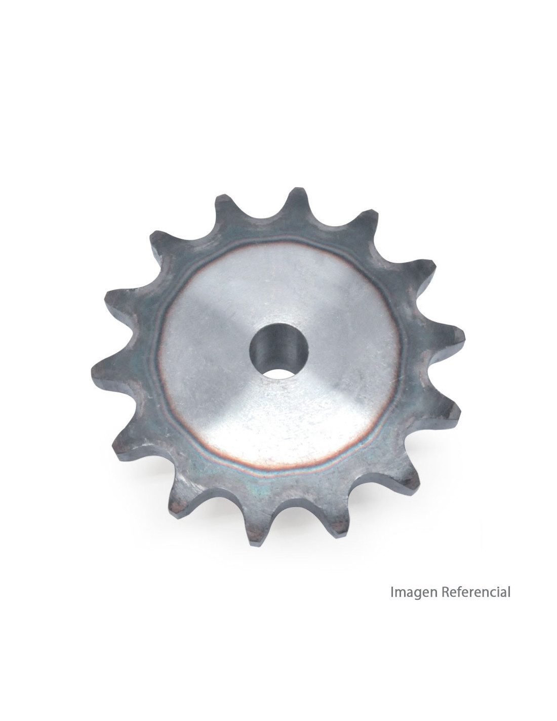 Piñon BS Simple de acero con tratamiento termico en los dientes y maza tipo B (desplazada a un lado), designación BS 455 B 14 - 06B-1 Z 14. Utilizado para transmitir movimiento con cadena de rodillos.