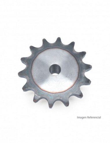 Piñon BS Simple de acero con tratamiento termico en los dientes y maza tipo B (desplazada a un lado), designación BS 455 B 13 - 06B-1 Z 13. Utilizado para transmitir movimiento con cadena de rodillos.